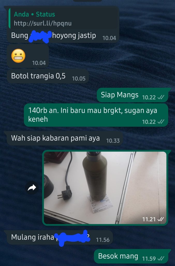 Kalau dalam akun marketplace, mungkin ini yang namanya keranjang belanja. Keranjangnya sih penuh, tapi tak kunjung di checkout, cuma di cek ombak doang. Calon konsumen yang satu ini cuma bilang, ‘kalau cocok, nitip’. Cocok apanya? Dan nitip diapain? Karena setelah gambar gambar dikirim, tak ada jawaban lain yang muncul dalam percakapan. Tapi kagak apa apa, tingkat kekesalan kami juga masih dalam tahap wajar. Karena di jastip SKYGERS ini, kami juga menyediakan fasilitas ‘keranjang belanja’.